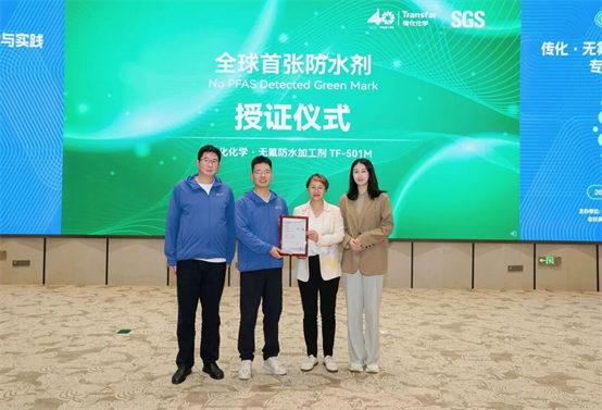 传化纺织化学的TF-501M此次成功获证,意味着传化在无氟防水核心技术领域已达到国际领先水平,为纺织行业提供了可替代含氟产品的成熟方案。